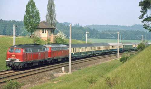 Am 17.5.89 machte die DB Leutershausen-Wiedersbach und Schnelldorf ganz „dicht“. Nur Dombühl blieb dieses Schick-sal dank dem Widerstand der Lokalpolitiker und der Bevölkerung erspart. Beim Fernverkehr änderte sich nach 1985 wenig an den täglich 9 bis 10 Schnellzügen pro Richtung: 1988 wurde der D 2550 / 2551 zum E 3850 / 3851 herabgestuft und bis / ab Heidelberg gekürzt. Von den übrigen Schnellzügen bog nur noch ein Zugpaar in Crailsheim Richtung Heilbronn ab, die anderen fuhren meistens über Aalen nach Stuttgart. |