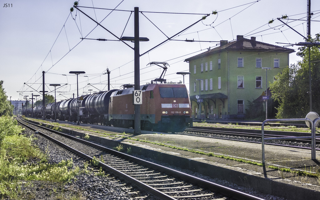 247 fuhr mit einem Güterzug nach Nürnberg durch Gleis 3.