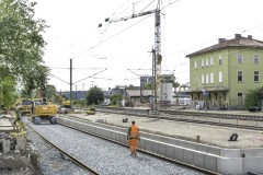 Vom 19. bis 23. Juni sperrte die DB den Abschnitt Ansbach - Crailsheim für wichtige Arbeiten an den neuen Stationen komplett. Ohne Beeinträchtigung durch den Zugverkehr ging das schneller und billiger: In Wiedersbach stellte sie in dieser Woche die beiden 170 Meter langen Außenbahnsteige im Rohbau fertig. In Dombühl schob die DB die neue Fußgängerunterführung ein. Auf einer Gleitbahn „schwebte“ das rund 23 Meter lange und 430 Ton-nen schwere Bauteil in die richtige Position. Die Betriebsruhe wurde auch genutzt, um neue Weichen einzubauen und die südliche Hälfte des Bahnhofs „abzuräumen“. |